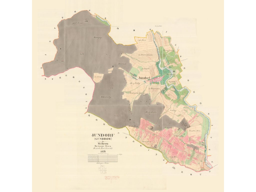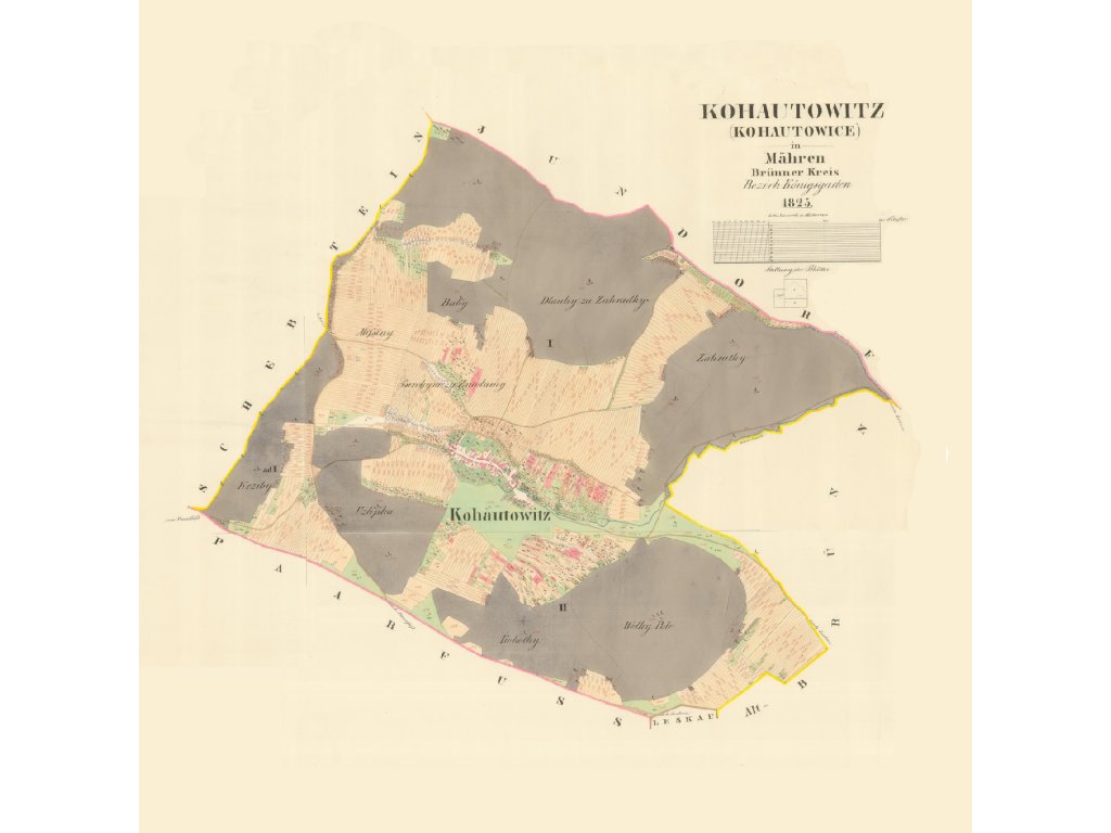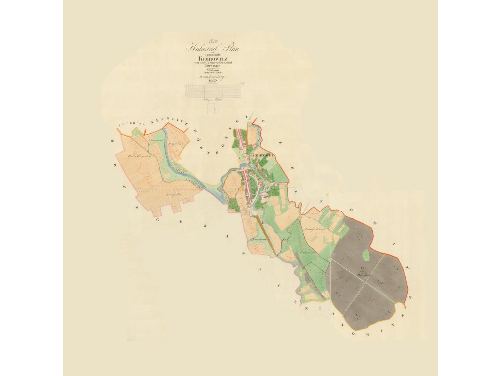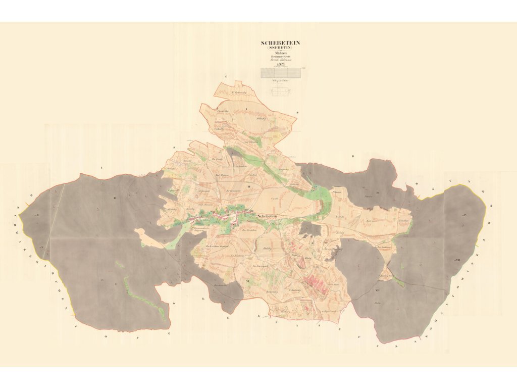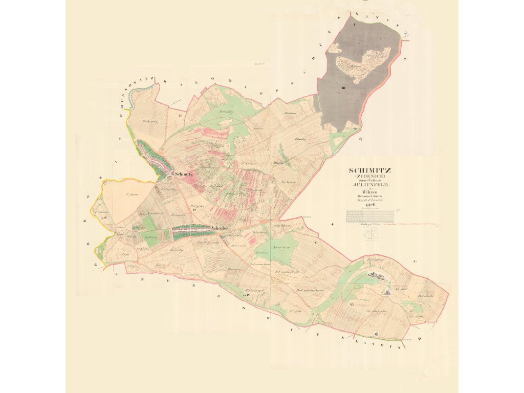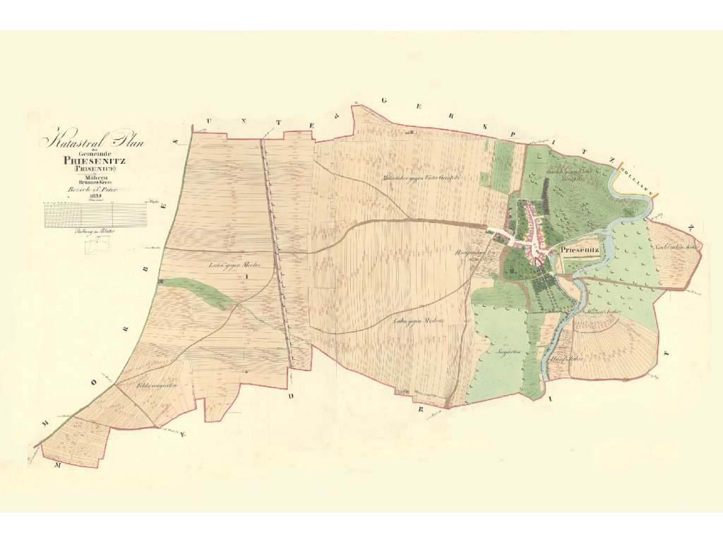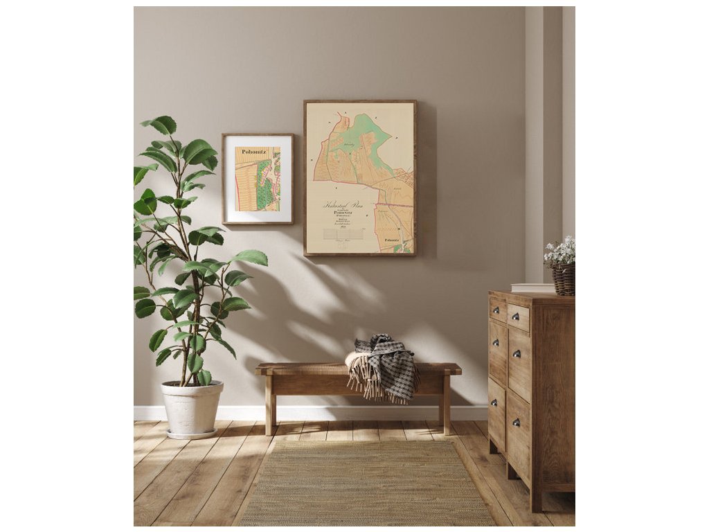 Zábrdovice - předměstí u kláštera, patřily k nejstarším osídleným místům. Dolní Heršpice - "Nalevo Dolní Heršpice z roku 1825, napravo současná mapa městské čtvrti Dolní Heršpice na jihu statutárního města Brna." Bystrc - "Nalevo Bystrc z roku 1826, napravo současná mapa městské části Brna-Bystrc." Jehnice - "Nalevo Brno-Jehnice z roku 1826, napravo současná mapa městské části Brna-Jehnice." Černovice - "Nalevo Černovice z roku 1825, napravo současná mapa městské části Brna-Černovice." Královo pole - "Nalevo Královo pole z roku 1826, napravo současná mapa městské části Brna-Králova pole." Originální rozměr tohoto katastrálního uzemí. Posterpapír 200g Satin: Ekonomická varianta polomatného provední s tiskovým rozlišením 720dpi. Oceníte ji pro nejlepší cenu při výborné kvalitě tisku. Tisk je UV odolný, určený do interiéru. Fotopapír 230g matný: Kvalitní hluboce matný papír na kterém vyniknou i ty nejjemnější detaily díky povrchu pro tisk ve fotografickém rozlišení 1440 dpi. Pokud máte rádi detaily, je to správná volba stejně jako pro menší formát, kde je mapa mnohonásobně změnšení. Tisk je UV odolný, určený do interiéru Matné plátno 350g na rámu: Malířské plátno s jemnou strukturou a vynikajícím rozlišením tisku zachytí každý detail. Plátno je napnuté na kvalitním dřevěném rámu a díky potisku bočníc stran je nepřehlédnutelnou ozdobou každého interiéru. Také tento tisk je UV odolný - neblednoucí a určený do interiéru Pozn: Pokud máte zájem o jinou velikost nebo provedení (exteriérové, magnetické, popisovatelné, tisk na textílii, tisk na tapetu, atp.) , kontaktujte nás prosím. Rádi Vám připravíme nabídku na míru. Samostatné obce v okolí Brna roku 1825 >