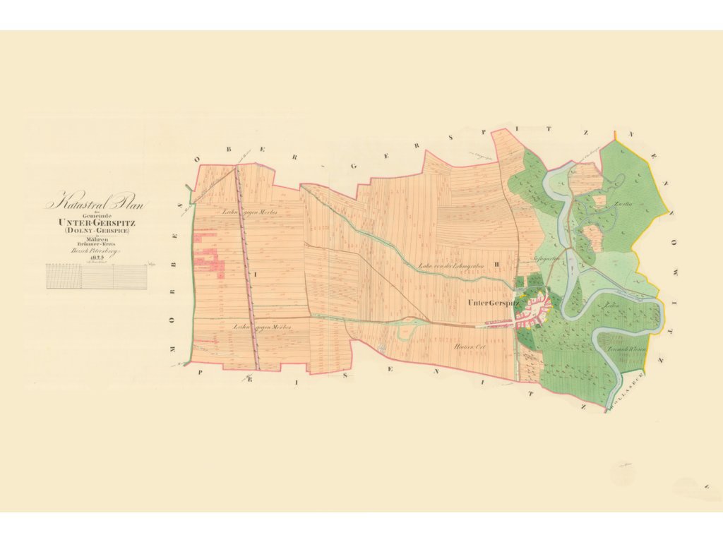 Mapa pochází z let 1825 - 1846 kdy byly na našem území zpracovány tyto velmi podrobné mapy Stabilního katastru v měřítku 1:2880 (města také 1:1440 a 1:720). Vynikající přesnost a preciznost map lze i po téměř 200 letech srovnat s dnešními digitálními mapami. Prakticky byly tyto mapy užívané pro další aktualizace až do 21. století. Díky tomu můžete nejen obdivovat tehdejší dobu, ale přesně dohledat jak dodnes existující objekty, tak i zaniklé památky, cesty nebo prameny a koryta řek. S přesností na metry souhlasí i tvary jednotlivých parcel, staveb i jejich umístění. Mapy obsahují podrobné informace o druhu užívání jednotlivých pozemků, druhu staveb, charakteru i významu cest, typu zeleně a mnohé další údaje jako místní názvy - často psané již česky.